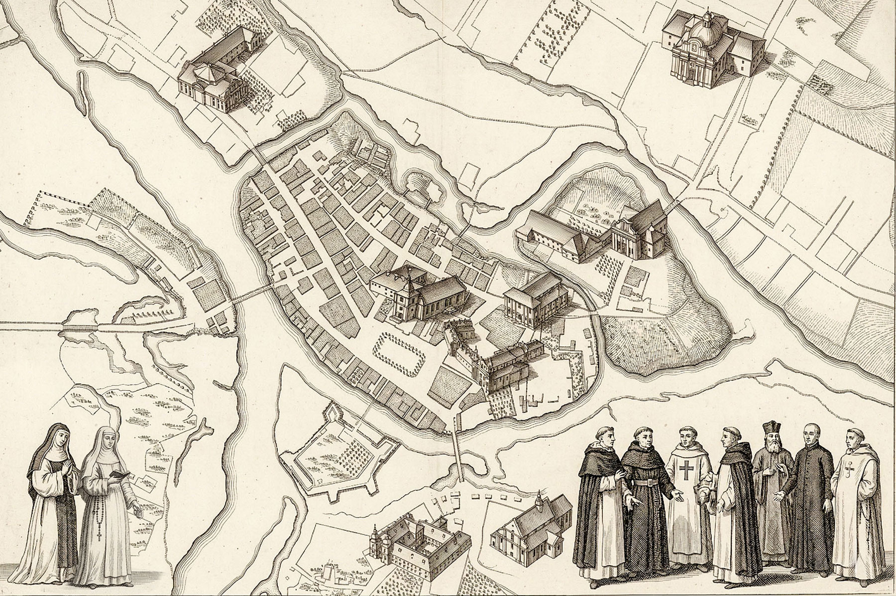 В центре города располагались иезуитский коллегиум, монастырь августинцев и базилианский монастырь. Южную часть занимал комплекс бернардинцев и бернардинок. В других районах находились монастыри доминиканцев, тринитариев и бригиток. Единственным православным монастырем в черте города был Симеоновский.